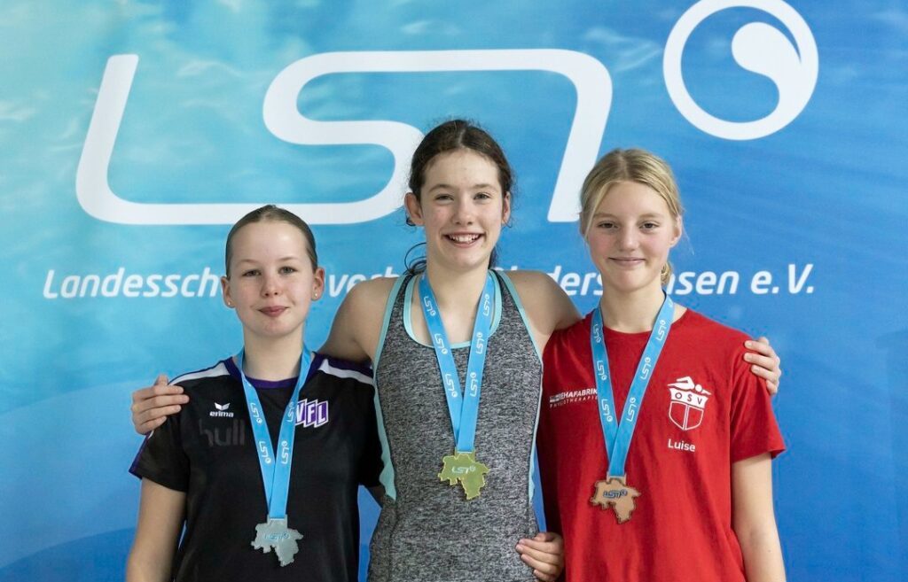 Luise Demmer (Jg.14) 100m Freistil in 1:12,07min., 400m Freistil in 5:35,38min.und 400m Lagen 6:22,01min.