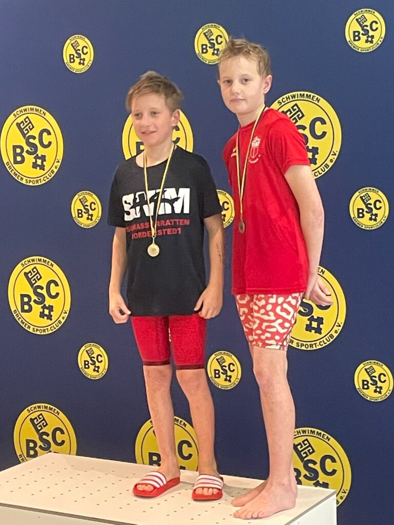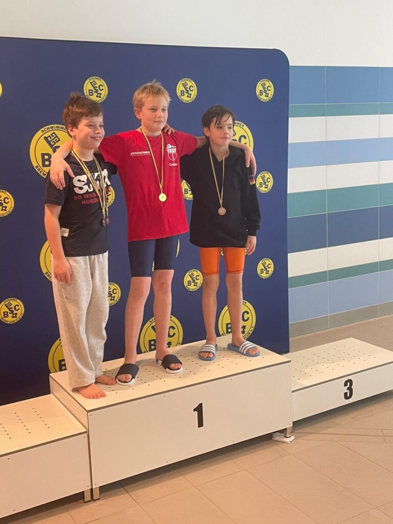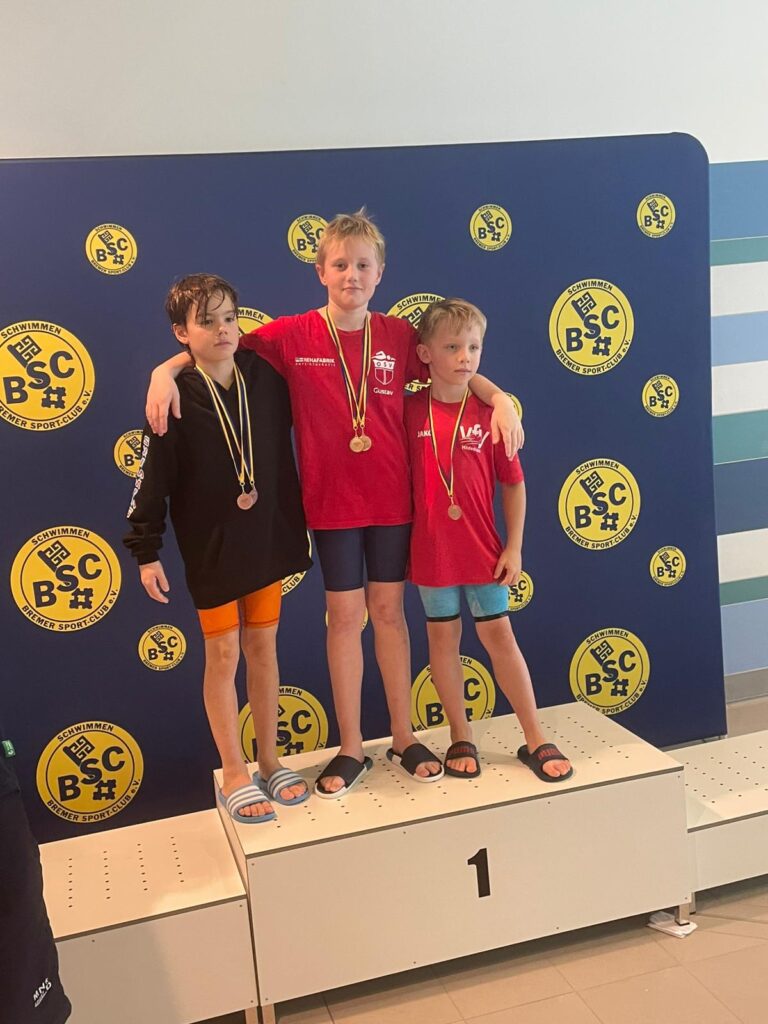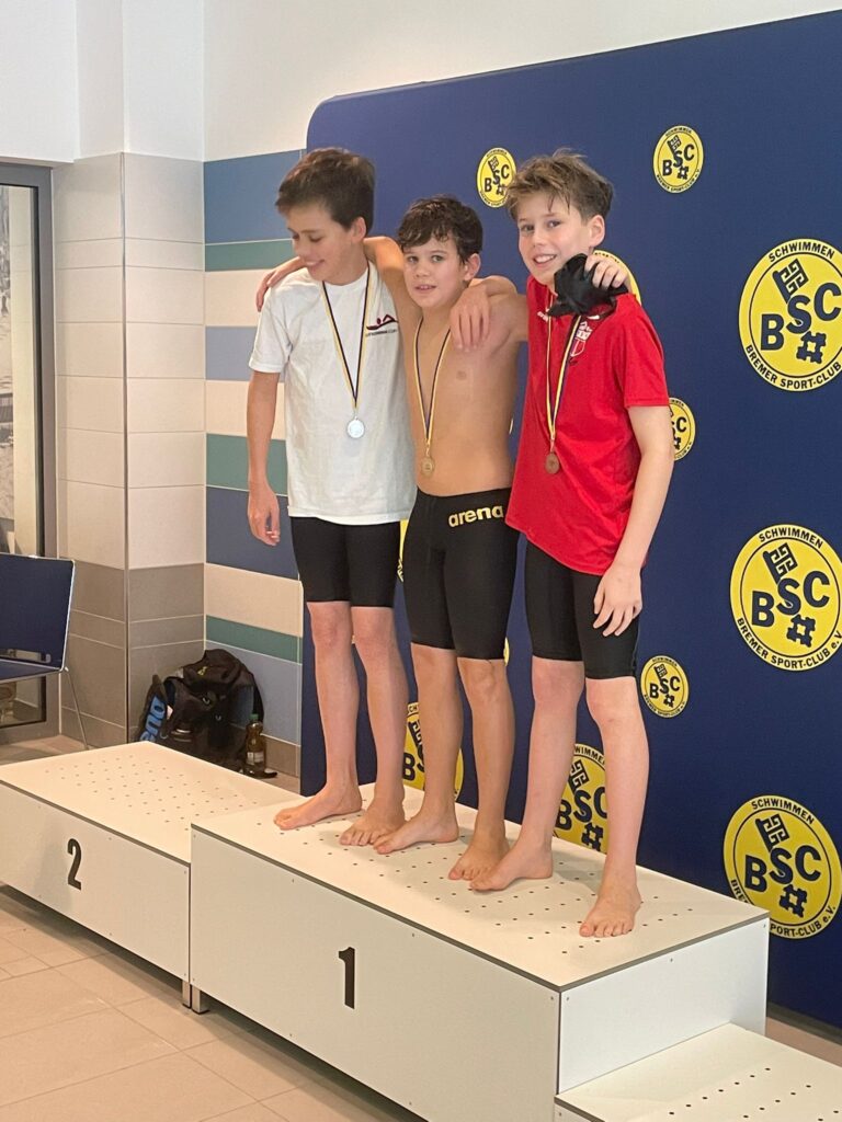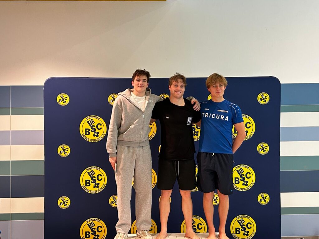 Emil Demmer (Jg.12), Karl Wenholt (Jg.13) und Nils Albermann (Jg.13) konnten viele neue persönliche Bestzeiten erreichen. Karl erschwamm eine neue Zeit über 100m Freistil (1:11,15min.) und Nils über 200m Lagen (3:07,78min.), sowie 100m Schmetterling (1:29,01min.)