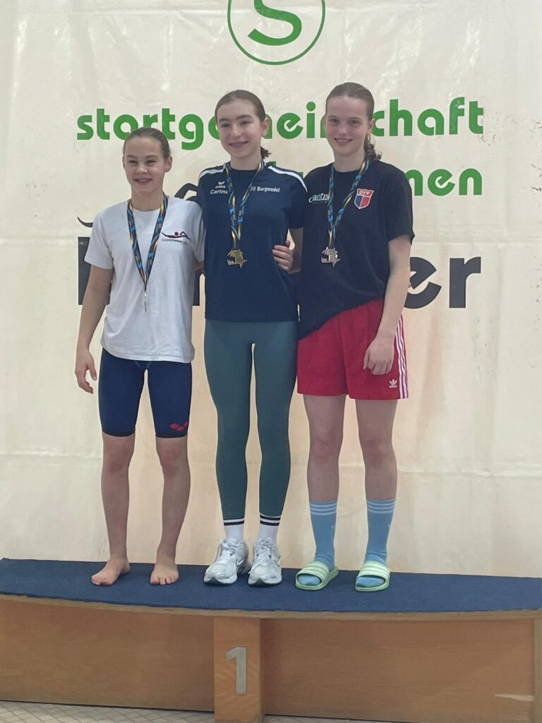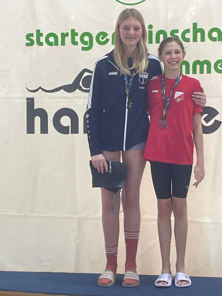 Jahrgangskameradin Friederike Runde konnte ebenfalls Gold mit nach Hause nehmen (400m Freistil in 5:15,34min.) Zudem erkämpfte sie sich den 3. Platz in 200m Freistil (2:29,41min.) und den 2. Platz in 100m Freistil (1:08,80min.).