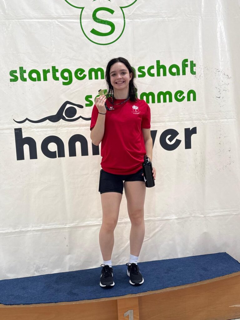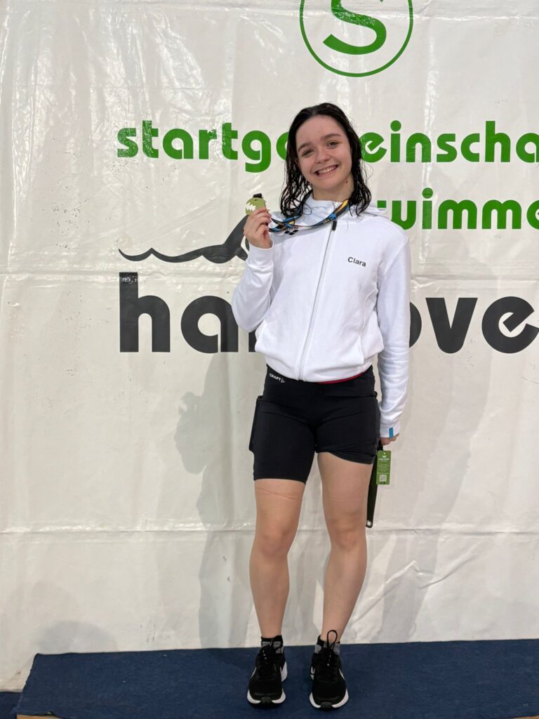Ihren ersten Start hatte Luise bereits am Freitag und konnte gleich die erste Medaille über 400m Freistil mit Platz 3 ergattern. Über 200m Lagen musste sie sich leider geschlagen geben, holte sich dennoch am Abend eine neue persönliche Langbahn-Bestzeit von 3:03,21min.