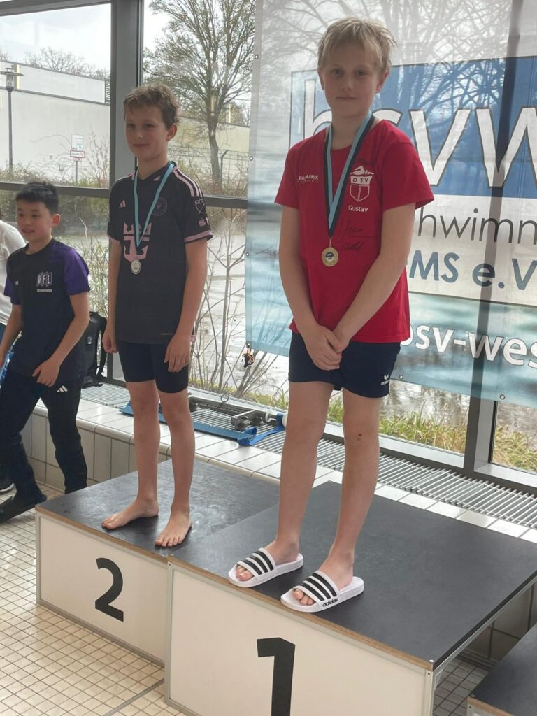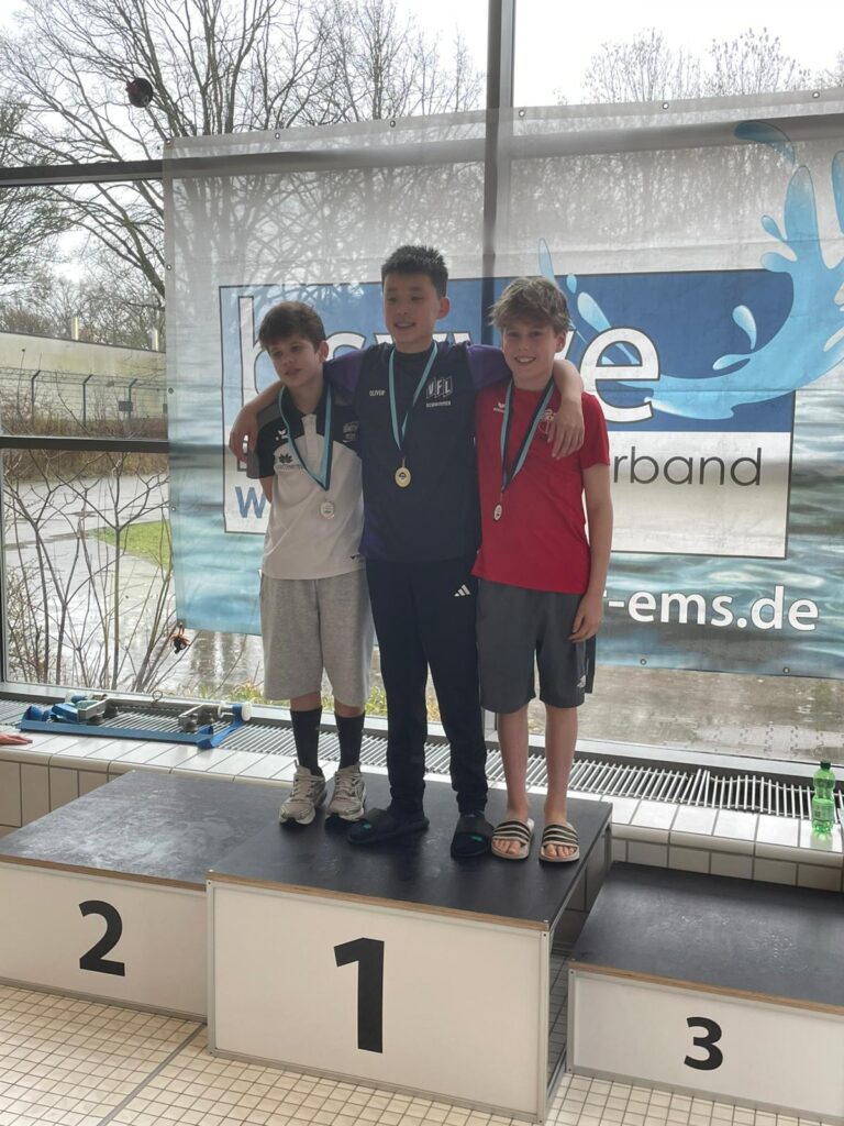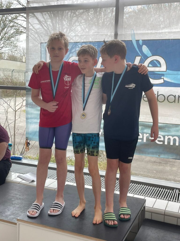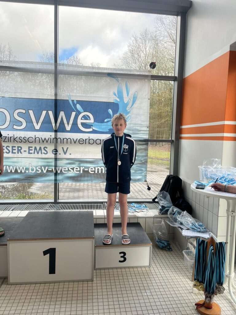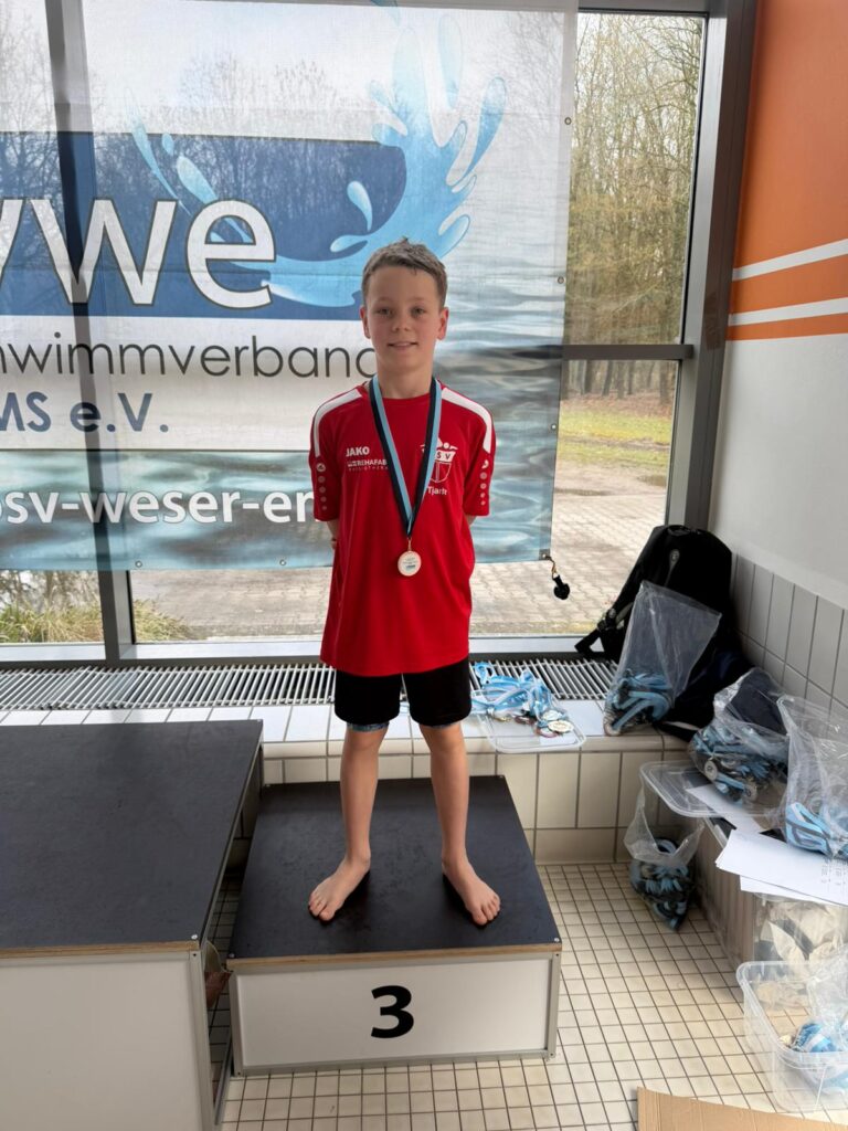 Tjark Früh (Jg.16) gewann die Bronzemedaille bei der Distanz von 100m Brust (1:53,51min.). Zusätzlich erschwamm er neue Bestzeiten in 50m Rücken (0:53,66min.), 100m Freistil (1:35,21min.), 50m Freistil (0:40,70min.), 50m Brust (0:53,02min.) und 200m Freistil (3:20,68min.)