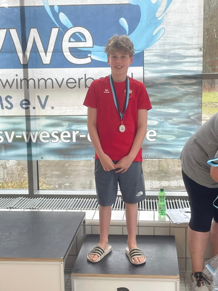 Ältester Schwimmer Ole Weerts (Jg.09) gewann zwei Silbermedaillen über 50m Freistil (0:25,15min.) und 200m Freistil (2:10,45min.) Freuen konnte er sich zudem über Bronze bei den Strecken 50m Schmetterling (0:28,16min.) und 200m Lagen (2:32,12min.)