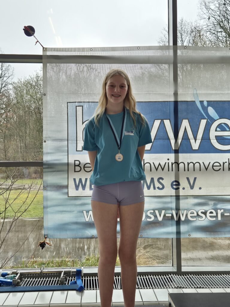 Mila Hische (Jg.15) durfte ebenfalls Bronze über 100m Schmetterling in einer Zeit von 1:48,89min. mit nehmen. Sie verbesserte sich über 100m Freistil (1:24,74min.) und 50m Schmetterling (0:46,45min.).