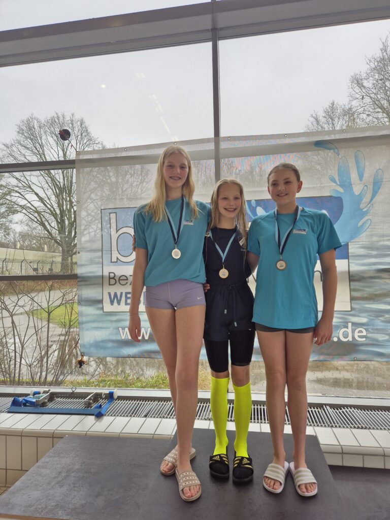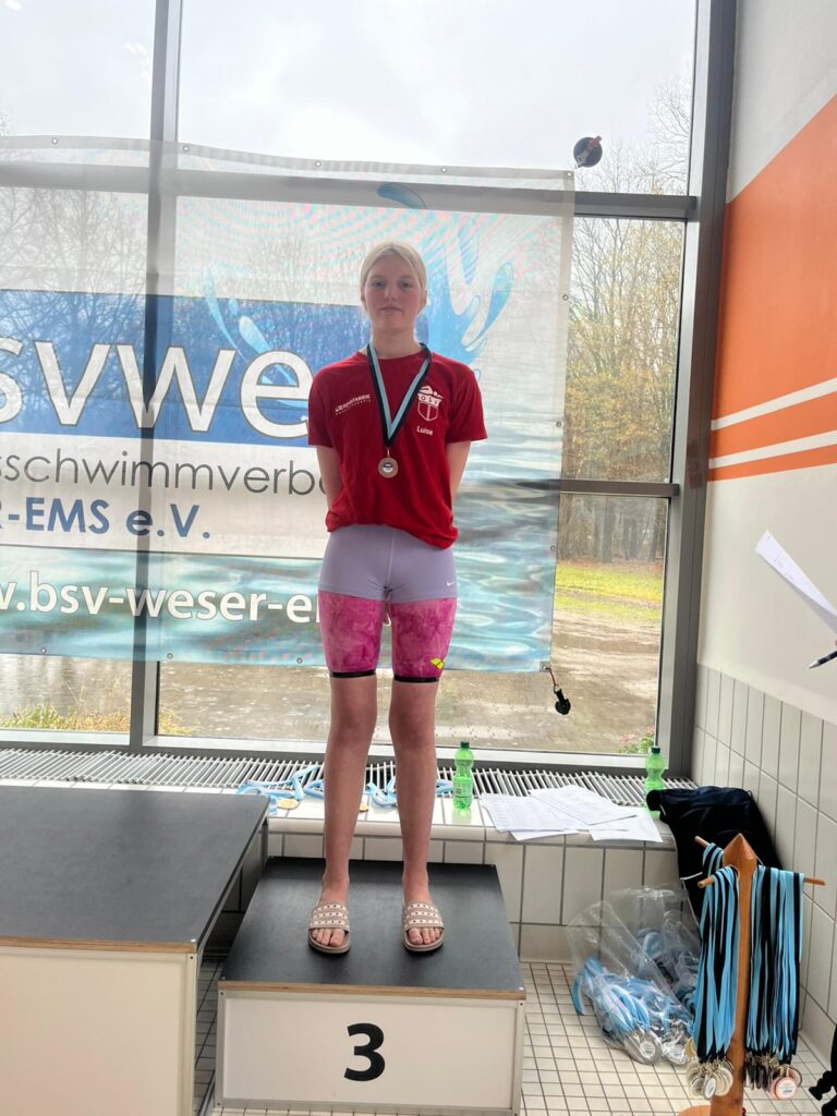 Älteste Schwimmerin Lina Witte (Jg.09) verbesserte sich auf der Kurzstrecke 50m Brust, bestieg zudem das Podest mit Platz 2 und ergänzte über 100m Brust ihre Medaillensammlung mit Platz 3.