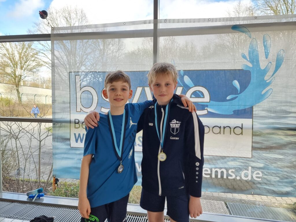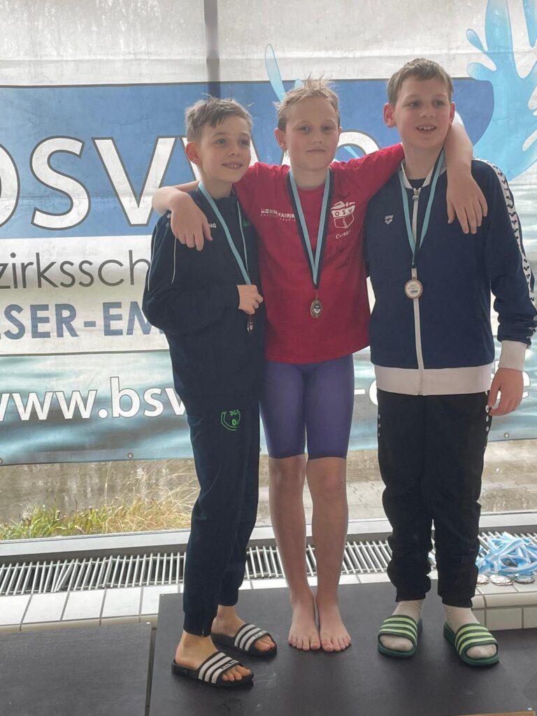 Eine weitere Bronzemedaille konnte Nils Albermann (Jg.13) seins nennen, die er in 100m Rücken (1:19,33min.) gewann. Auch er konnte viele neue persönliche Bestzeiten sichern: 100m Schmetterling (1:27,25min.), 50m Schmetterling (0:37,31min.), 200m Rücken (2:55,56min.)und 50m Freistil (0:31,23min.).